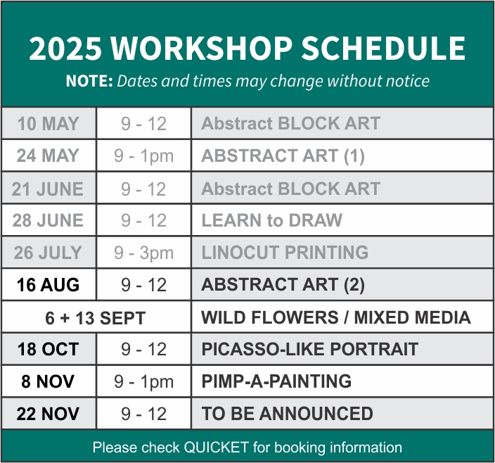 BOOKING: Online Quicket bookings will open closer to the date of the workshop.